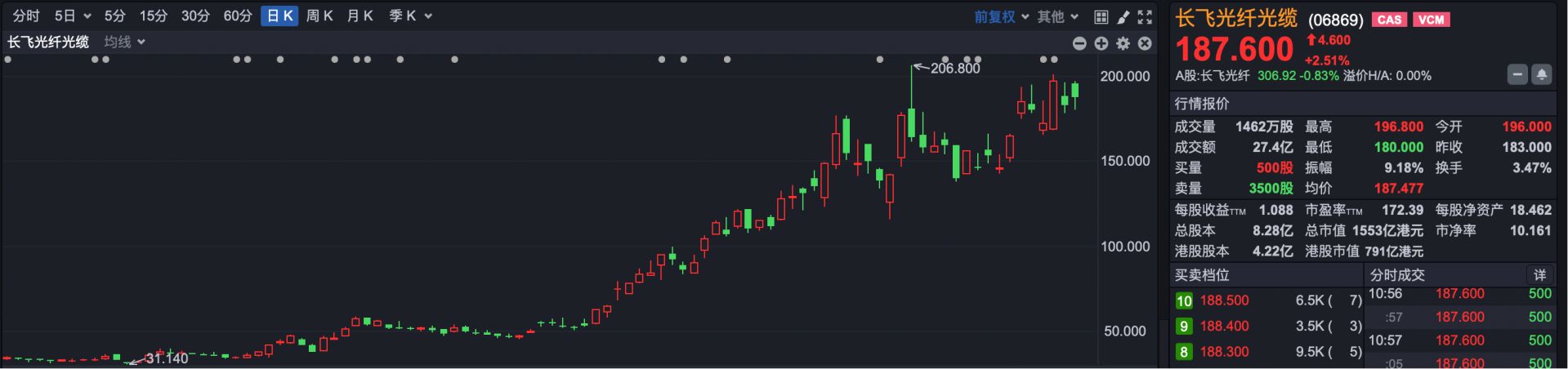 1.长飞光纤电缆(HK06869):一季度涨幅253.97%。