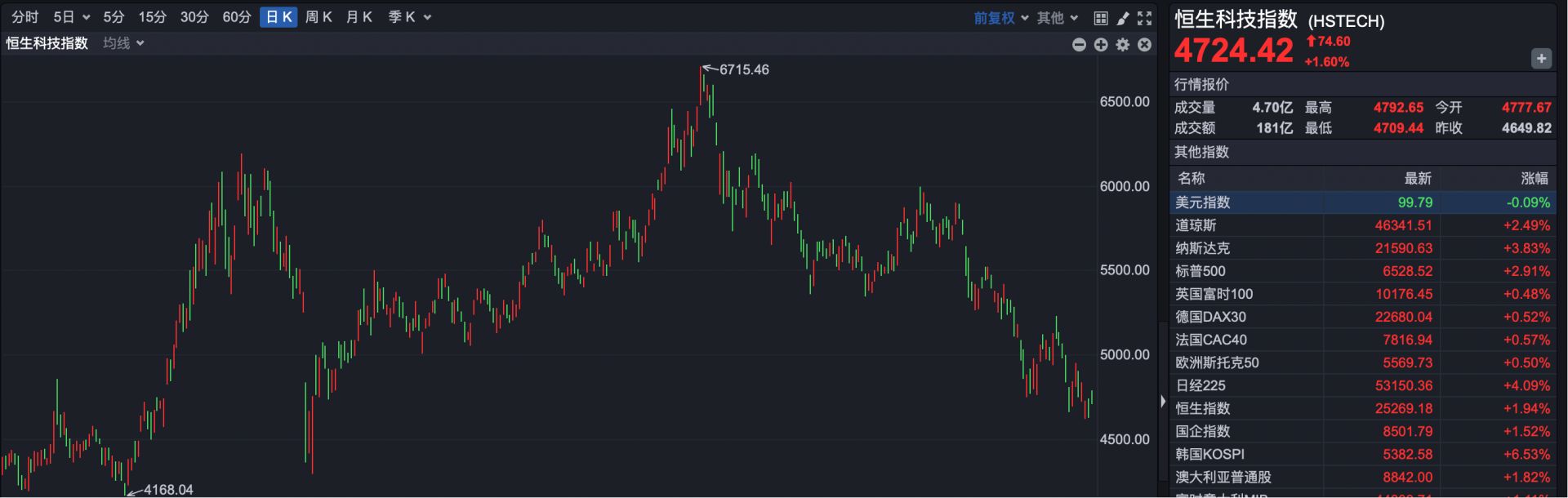 市场表现:科技股领跌,恒科指数逼近“关税底”