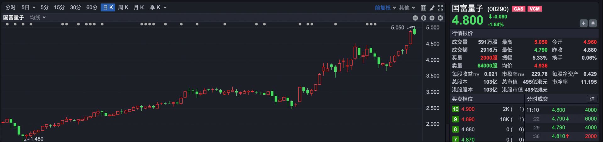 4.国富量子(HK00290):一季度涨幅82.77%。