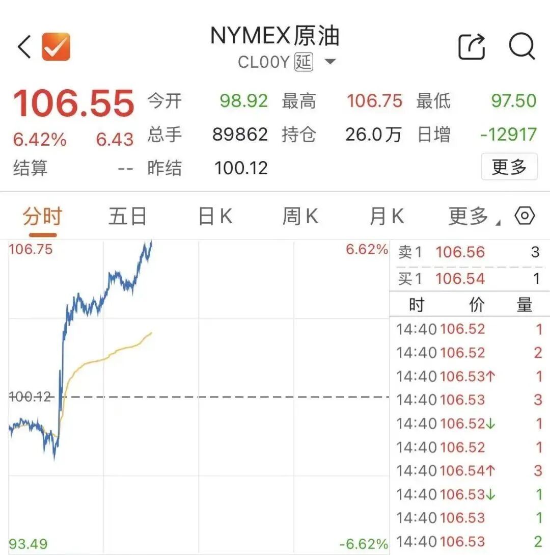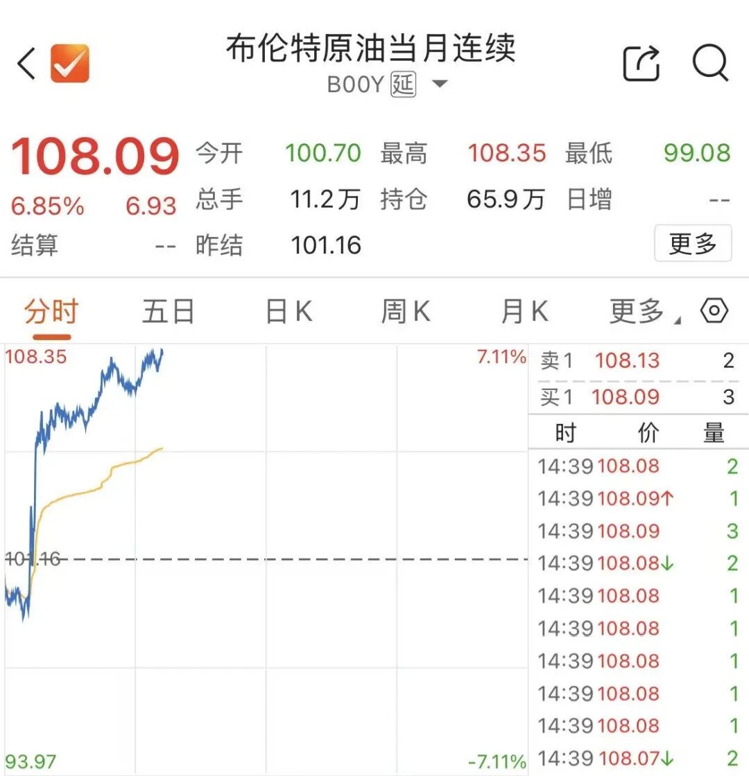 国际原油期货价格在连跌两日后回升。截至4月2日下午发稿,布伦特原油期货一度上涨超7%,截至发稿涨幅有所回落,最新价格为108.09美元/桶,上涨6.85%。WTI原油日内涨幅达6.42%,报106.55美元/桶。