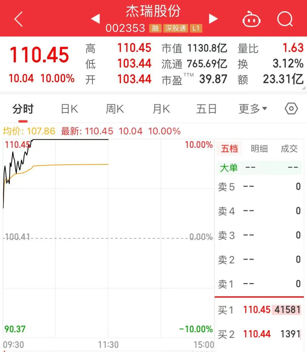 另一个热点是杰瑞股份涨停,最新市值1130.8亿元。