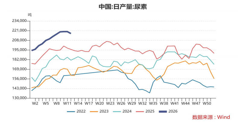 进一步追踪2026年生产情况来看,煤制尿素的开工率、日产量均处于2022年以来的历史高位,而主要煤炭价格则处于同期历史低位,成本端亦保持相对稳定。