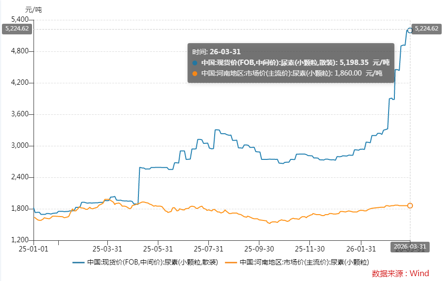 而自2月28日美伊局势升级以来,霍尔木兹海峡通航受阻使得当地尿素价格上涨速度明显提升。