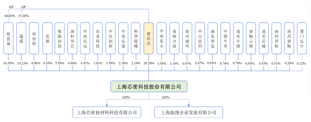 谢昌杰直接持有芯密科技20.26%的股份,为芯密科技第一大股东;其同时间接控制公司26.72%的股份表决权,合计控制公司46.98%的股份表决权,为公司的控股股东、实际控制人。