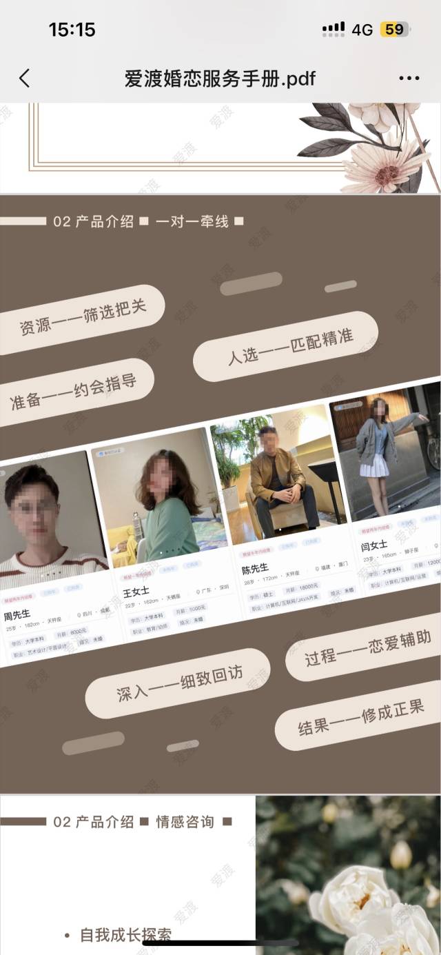 高泽彻底心动,当月签订4万元服务合同,约定4个月内安排6次相亲,女会员需符合“165cm以上、本科学历、有眼缘”要求。