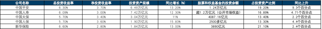 图3:A股五家上市险企资产配置相关数据一览,图源:东吴证券研究报告
