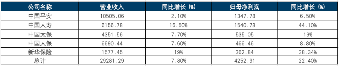 图1:A股五家上市险企营业收入、归母净利润数据一览(单位:亿元),根据年报数据统计