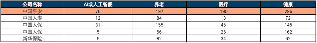 年报和业绩会中,AI或人工智能、医疗、健康、养老的关注度较高,也是上市险企普遍关注的布局热点。