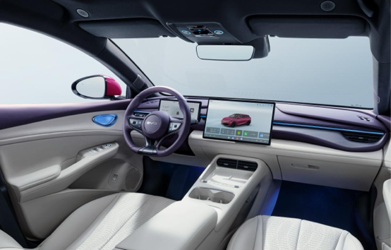 舒享方面,新车增加主驾8向电动调节和4向腰撑,可有效缓解疲劳。全新66L前舱行李箱搭配新增前备箱电动解锁,实用又便捷。127色环舱氛围灯、冷暖两用车载冰箱、Dynaudio品牌12扬声器、VTOL移动电站等细节配置,都让车辆成为美好生活方式的延伸。同时,新增镜海银、波西娅玫红2种外观配色,及爱琴海蓝、极光紫2种单色车身配色,内饰新增暮紫/暖白双拼配色,让这款车成为年轻人先锋审美的最佳表达。