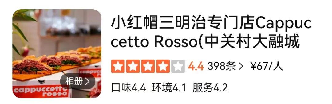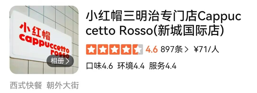 据悉,备受消费者喜爱的小红帽三明治创始于北京,最初和各个咖啡品牌合作,以店中店的形式出现。创始人曾表示,品牌立志成为正宗老北京意大利三明治的代表。在大众点评上,不少消费者曾评论称“真的很好吃”。甚至有人表示,这个品牌的三明治,是自己吃过最好吃的。