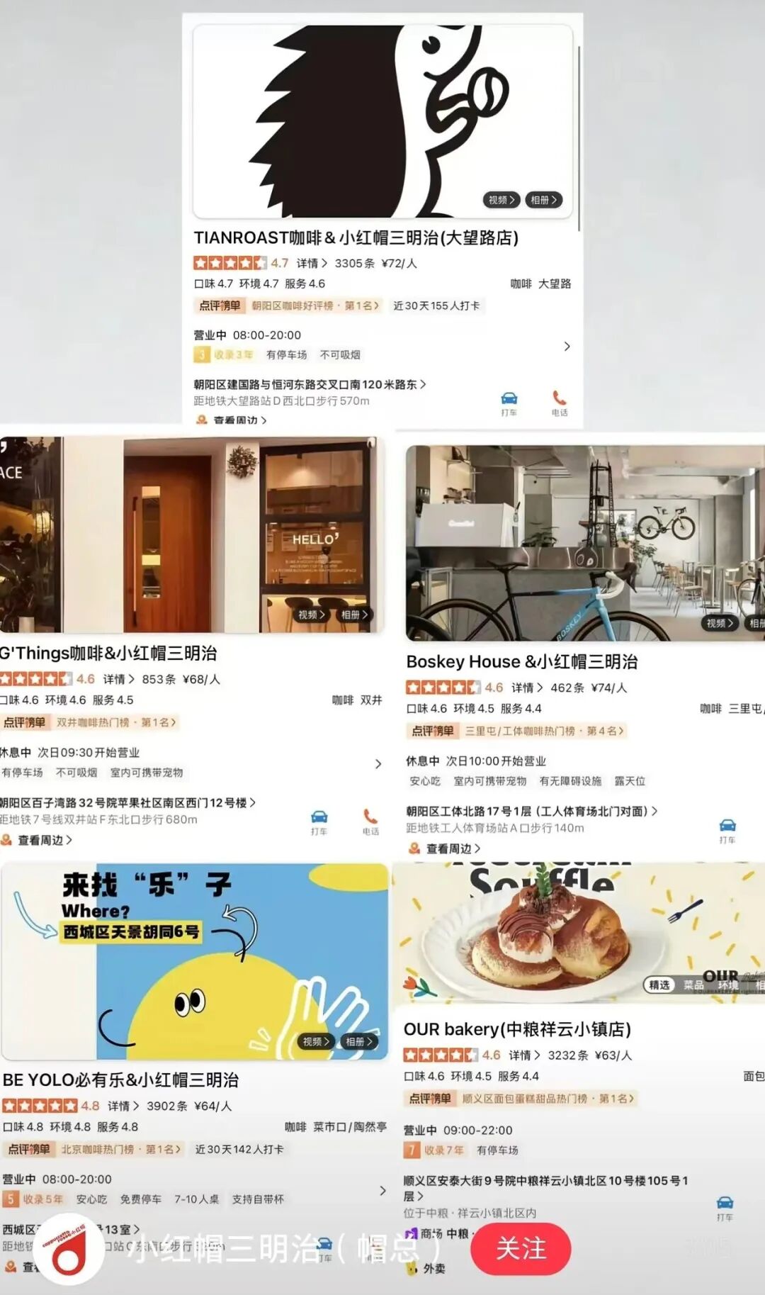 小编查询小红帽三明治创始人帽总的小红书账号发现,帽总曾发帖回答消费者关于合作门店的提问,并以截图形式展示现有合作品牌。其中,小红帽三明治在北京的合作门店分别为TIANROAST咖啡&小红帽三明治(大望路店)、G’Things咖啡&小红帽三明治、Bosky House&小红帽三明治、BE YOLO必有乐&小红帽三明治和OUR bakery(中粮祥云小镇店)。