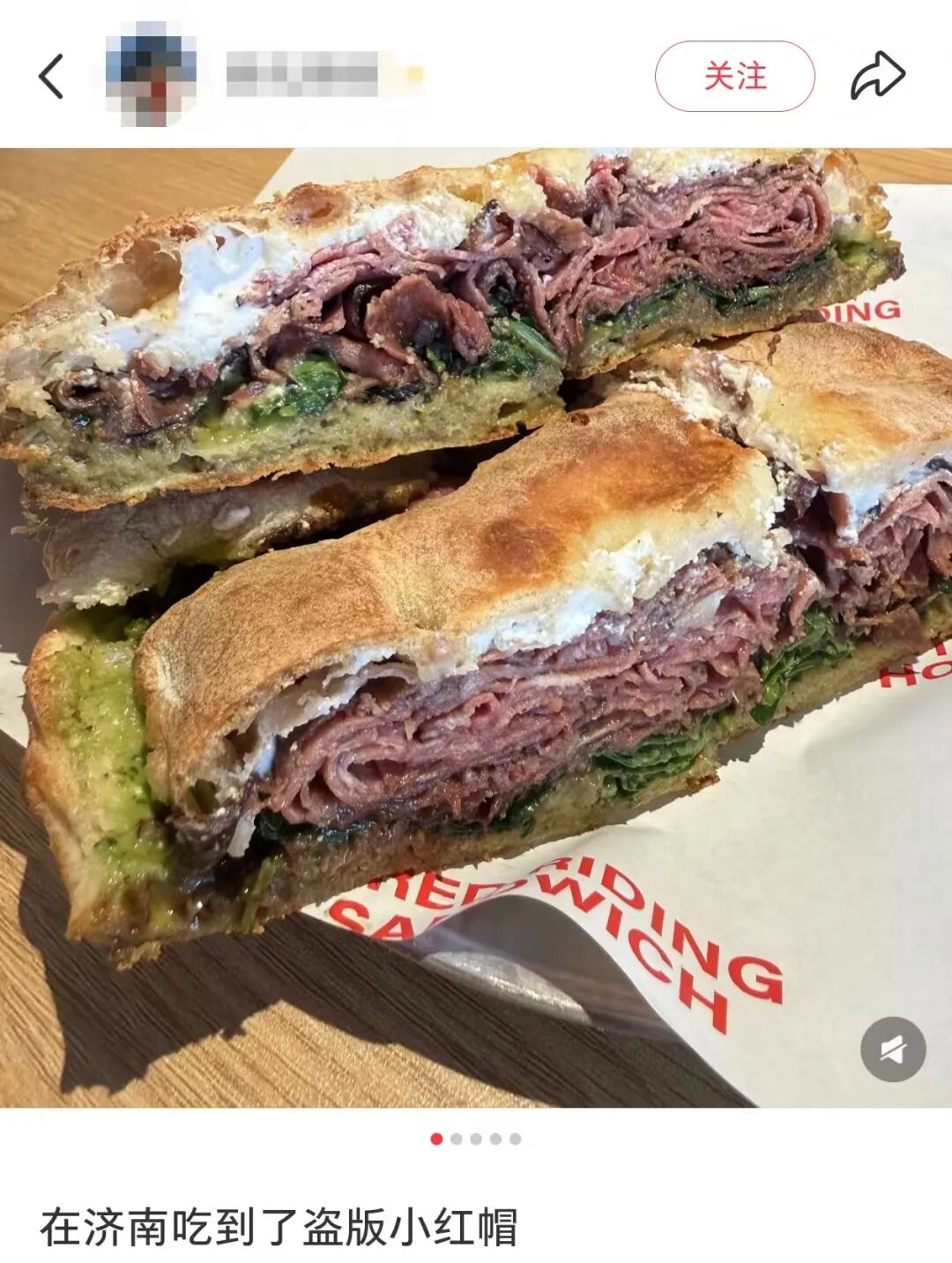 近日,不少网友在社交平台表示,发现了网红三明治品牌小红帽的仿冒品。有人发帖称:“在济南吃到了盗版小红帽”。还有人表示:“得亏没吃过原版,所以觉得盗版还可以吧”。