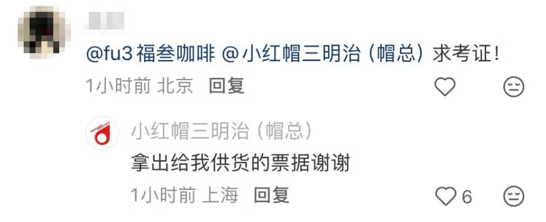 而就在该帖文评论区,有网友向帽总求证。帽总回复称:“请拿出给我供货的票据”。