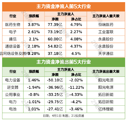 4月1日,市场高开震荡,三大指数均涨超1%,科创50指数涨超3%。截至收盘,沪指涨1.46%,深成指涨1.7%,创业板指涨1.96%。沪深两市成交额2.01万亿,较上一个交易日放量199亿。