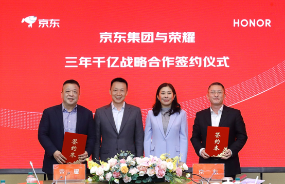 4月2日,荣耀与京东签订战略合作协议,建立为期三年的全方位战略合作伙伴关系,双方将围绕产品共创、用户共营、生态共享三大核心领域,构建新型合作体系,计划实现累计规模超1000亿元的全领域合作目标。
