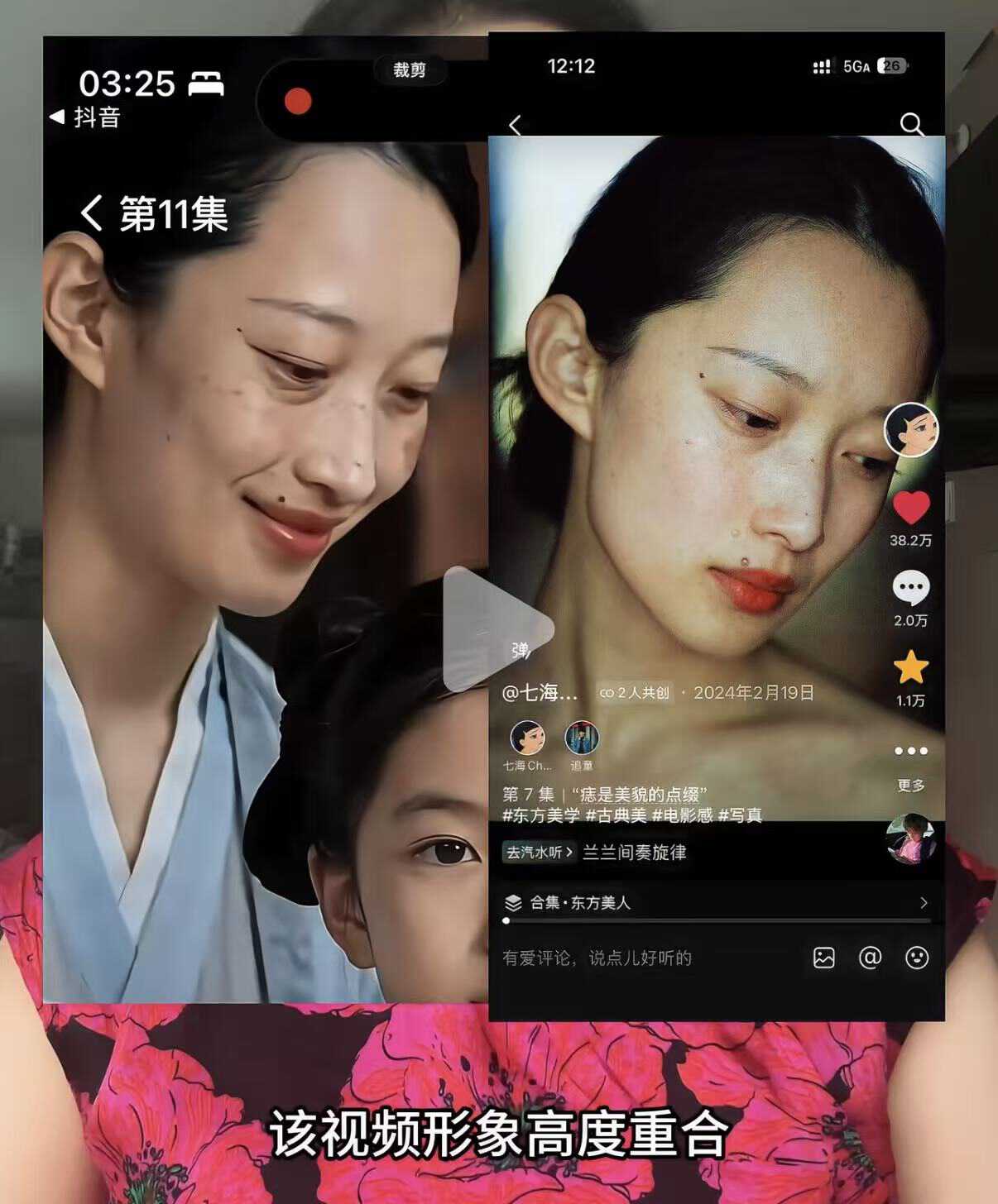 七海也在社交平台提到,《桃花簪》里一名女性配角的五官、脸型和点痣位置,和自己2024年的创作非常相似。七海说,这不仅侵害了她作为商业模特的职业资产,AI角色虐待动物、扇女性巴掌的情节也让她感到人格侮辱,已打算起诉。