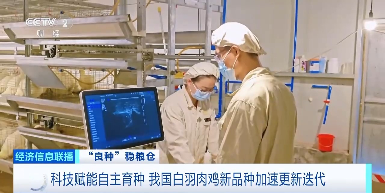 采访中,记者了解到,目前科技赋能正在让我国白羽肉鸡自主育种跑出“加速度”。在育种场的检测车间里,科研人员正忙着给上万只种鸡做全面体检,AI智能系统同步对B超、X光检测影像进行分析,短短几分钟就能精准判断出种鸡的胸肌发育、腿部健康等关键指标。