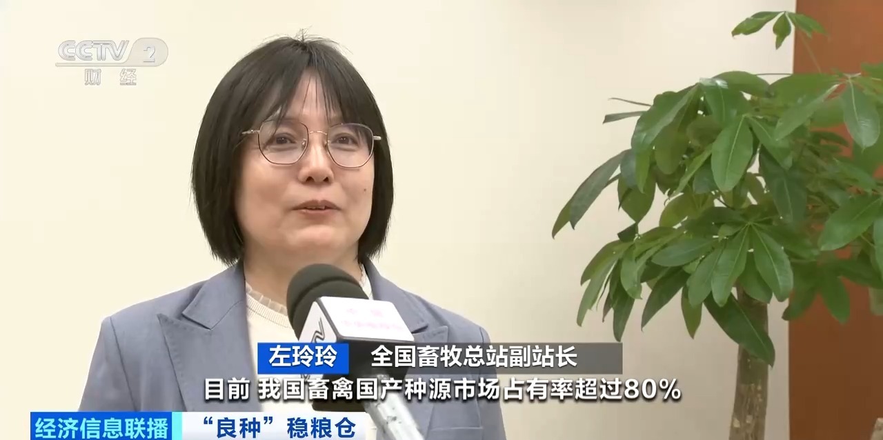 全国畜牧总站副站长 左玲玲:目前,我国畜禽国产种源市场占有率超过80%,前10%核心群种猪性能达到国际先进水平,奶牛年均单产10.5吨,比行动之初的2020年提高26%,国产白羽肉鸡品种实现零的突破,目前市场占有率已达31%,已先后出口到5个国家。