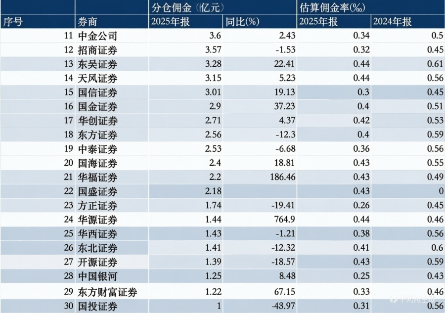 2025年,券商分仓佣金收入总规模趋于稳定。这也是《公开募集证券投资基金证券交易费用管理规定》落地后的首个完整年度。