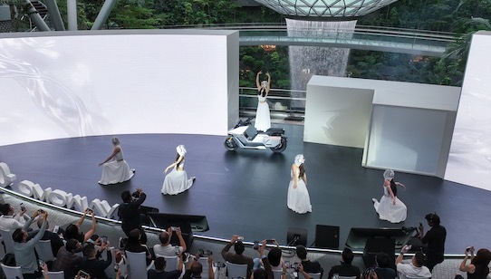 而在半个月前,新加坡樟宜机场,来自广州的目蔚科技(OMOWAY)在此举办发布会:聚光灯下,一台自平衡摩托车在缓缓行驶,没有驾驶员,一个芭蕾舞演员在后座上优雅地踮起脚尖、旋转、舒展。车轮在动,但车身非常稳定。