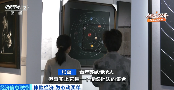 总台央视记者 易扬:当绣花针牵引着丝线穿梭在绣面,仿佛呼吸也在跟随着针脚的韵律调整。这样小小一枚针,竟然就能牢牢抓住我们的注意力,将我们从熟悉的快节奏里拉出来,沉浸式感受丝线的温度、光泽和苏绣的美。