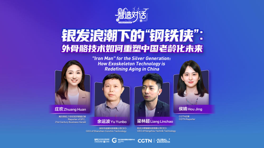 In this episode of Intelligent Dialogue, jointly presented by Southern Finance Media Corp. (SFC) and China Global Television Network (CGTN), reporters will enter Conchin Technology in Shenzhen and Technik Technology in Hangzhou to show you how Chinese exoskeleton robots are empowering the silver economy through innovative applications.