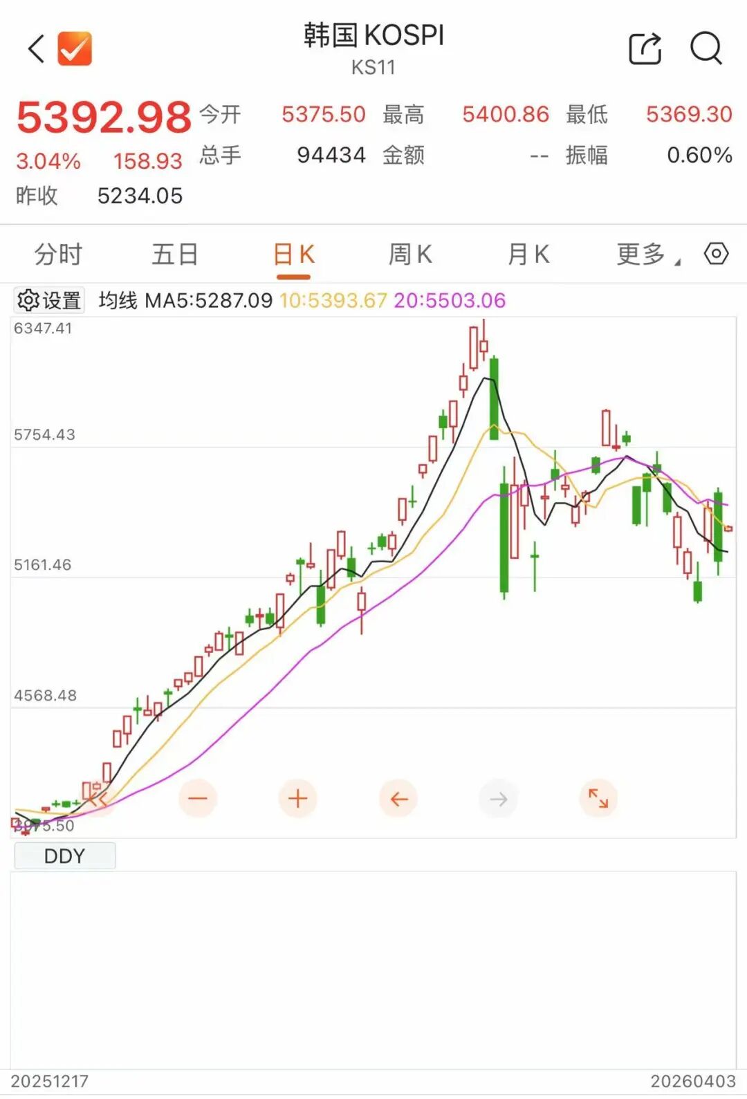 北京时间4月3日,日韩股市大幅高开。截至发稿,韩国综合指数一度涨超3%。