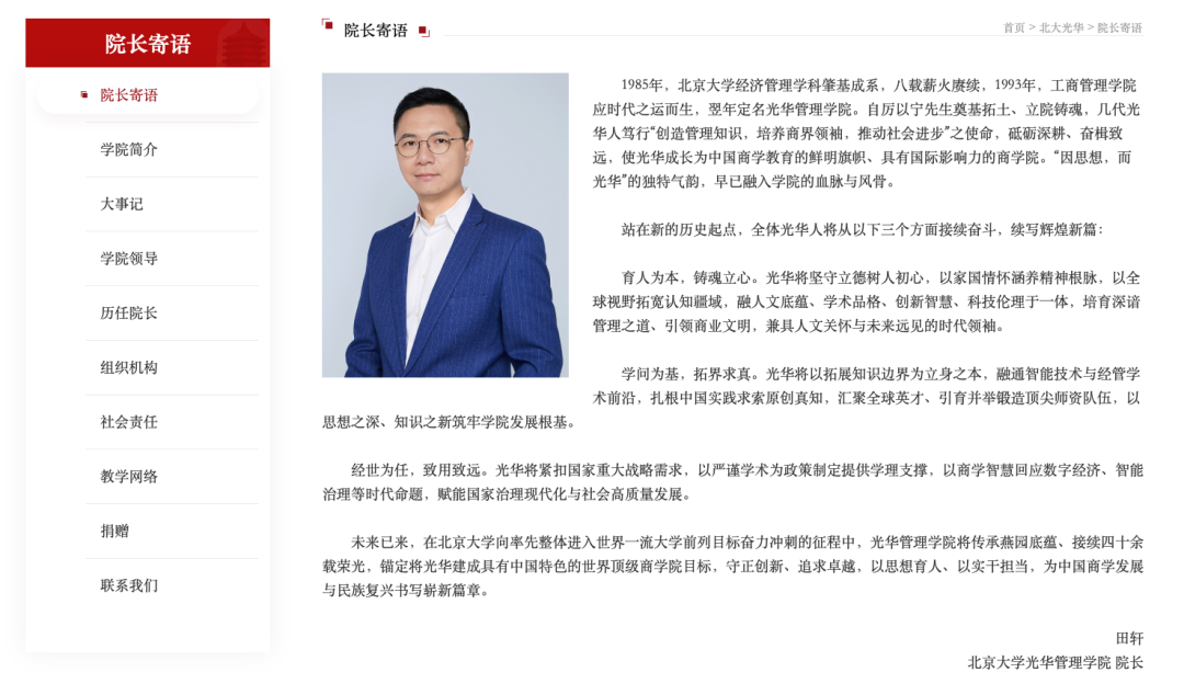 记者今日从北京大学光华管理学院获悉, 著名经济学家、北京大学经济学院教授田轩,出任北京大学光华管理学院院长 。