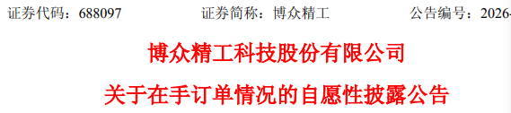 4月3日晚间,博众精工(688097)发布在手订单情况公告。