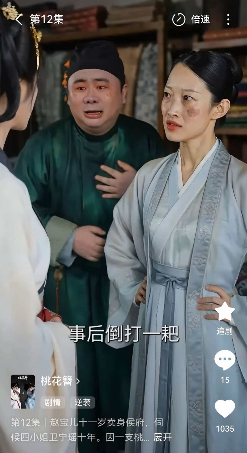 此外,模特七海也发布视频称自己的肖像被该短剧盗用。在视频中,七海称《桃花簪》中“何掌柜”一角与自己在2024年创作的“痣是美貌的点缀”视频形象高度重合。与白菜的遭遇类似,和七海相似的“何掌柜”同样是一个被丑化的角色。从社交平台展示的内容来看,在现实生活中,七海是参与过多个商拍项目的模特,不仅热心助力女性公益,也积极参与动物保护活动,而在剧中,“何掌柜”不仅面容受损,还是一个虐待动物的雌竞女。在七海看来,这是对她人格的精准抹黑。
