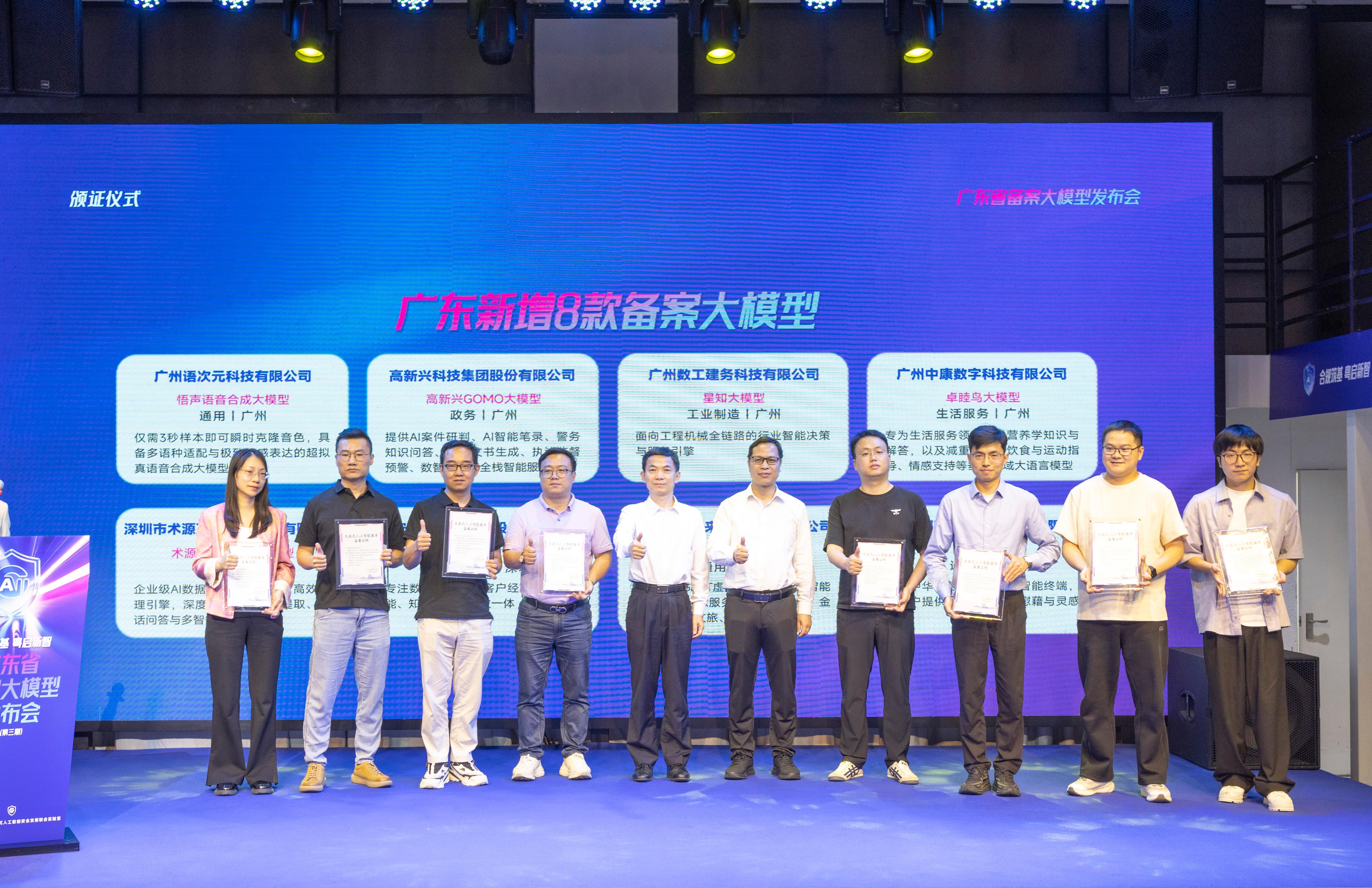 4月3日下午,“合规筑基 粤启新智”广东省备案大模型发布会(第三期)在广州举行,最新一批8家广东本土科技企业现场领取“生成式人工智能服务备案证明”。截至目前,广东备案大模型已有132款,居全国前列。
