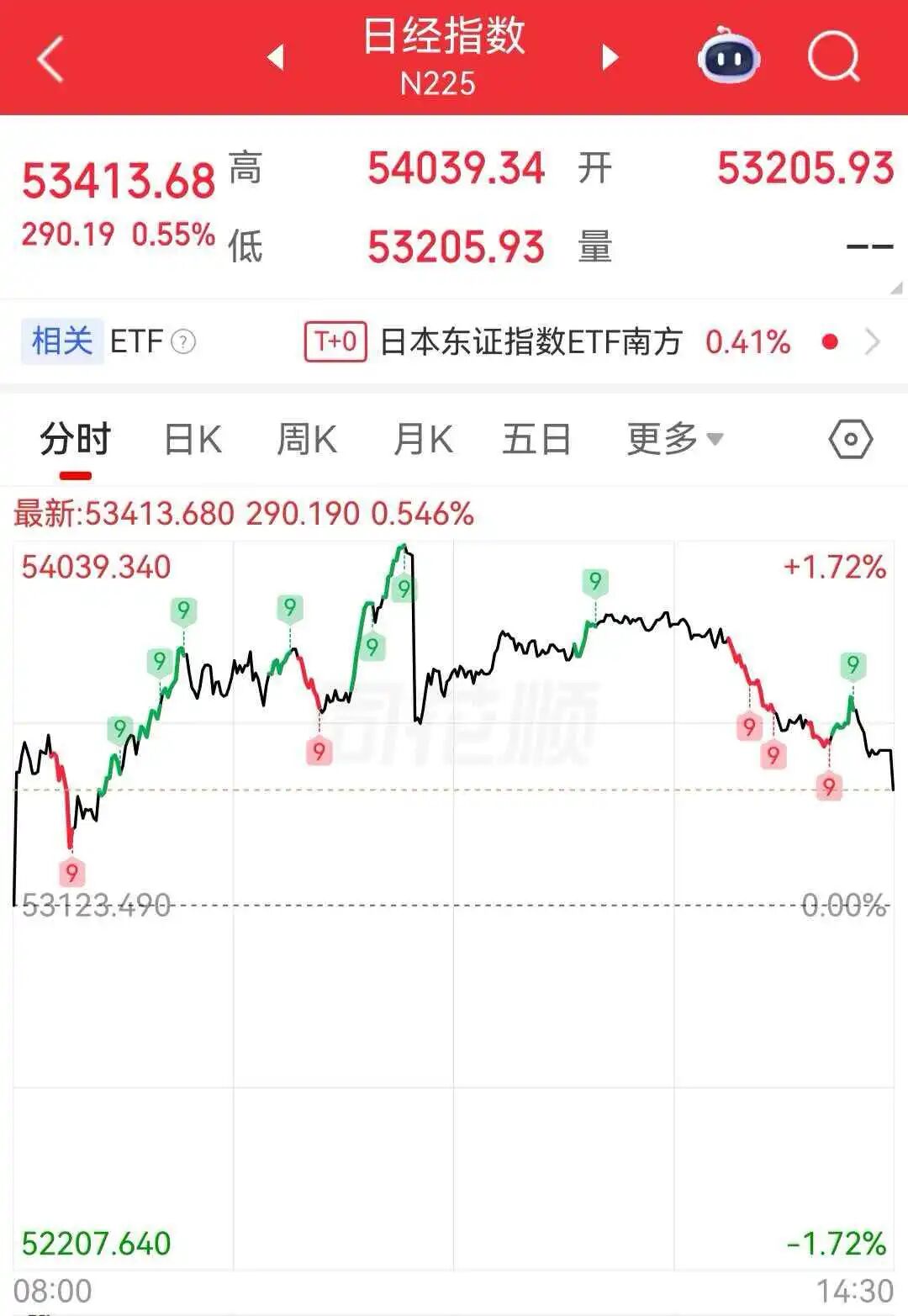 日经225指数 收盘涨0.55%报53413.68点,权重股方面,领涨个股表现活跃, 爱德万测试 涨1.74%, 保谷光学 涨1.4%, 迅销 与 任天堂 双双涨1.29%, 信越化学工业 涨1.13%;下跌个股中, 日立 跌1.91%, 三菱重工 跌1.42%。消息面上,日本各期限国债收益率全线走高,更多日本企业担忧中东冲突影响,部分企业考虑上调产品价格。