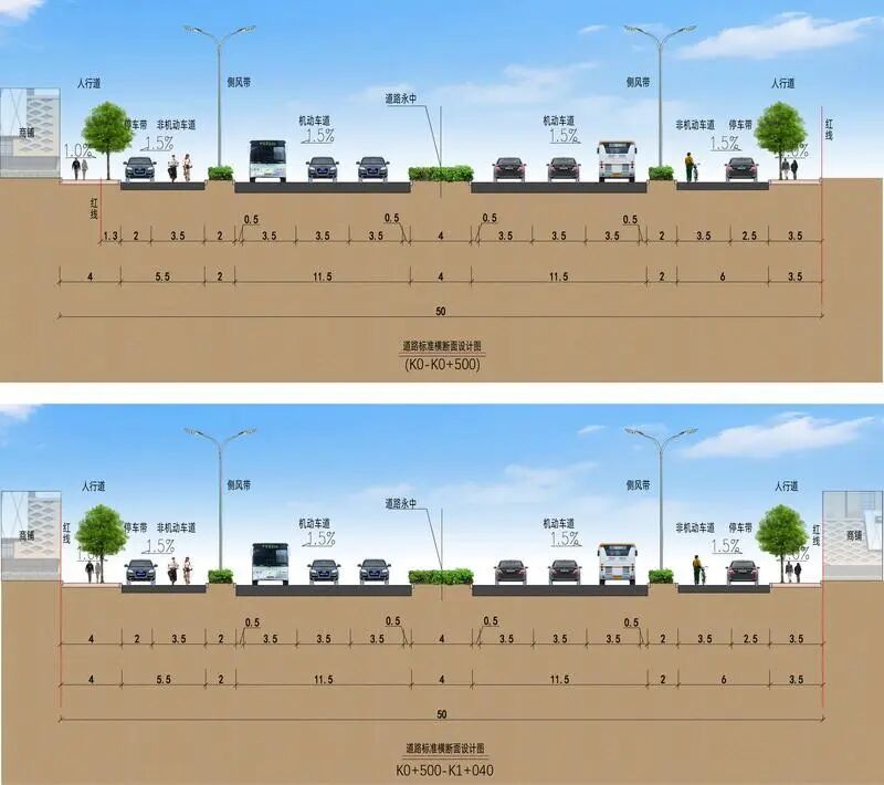 项目定位为双向六车道的城市主干道