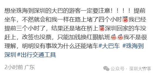 有网友从珠海坐大巴到深圳
