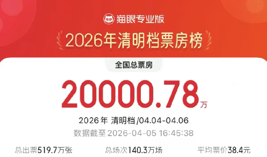 ■ 据网络平台数据,截至5日16时37分,2026年清明档档期(4月4日—4月6日),电影票房(含预售)突破2亿元。