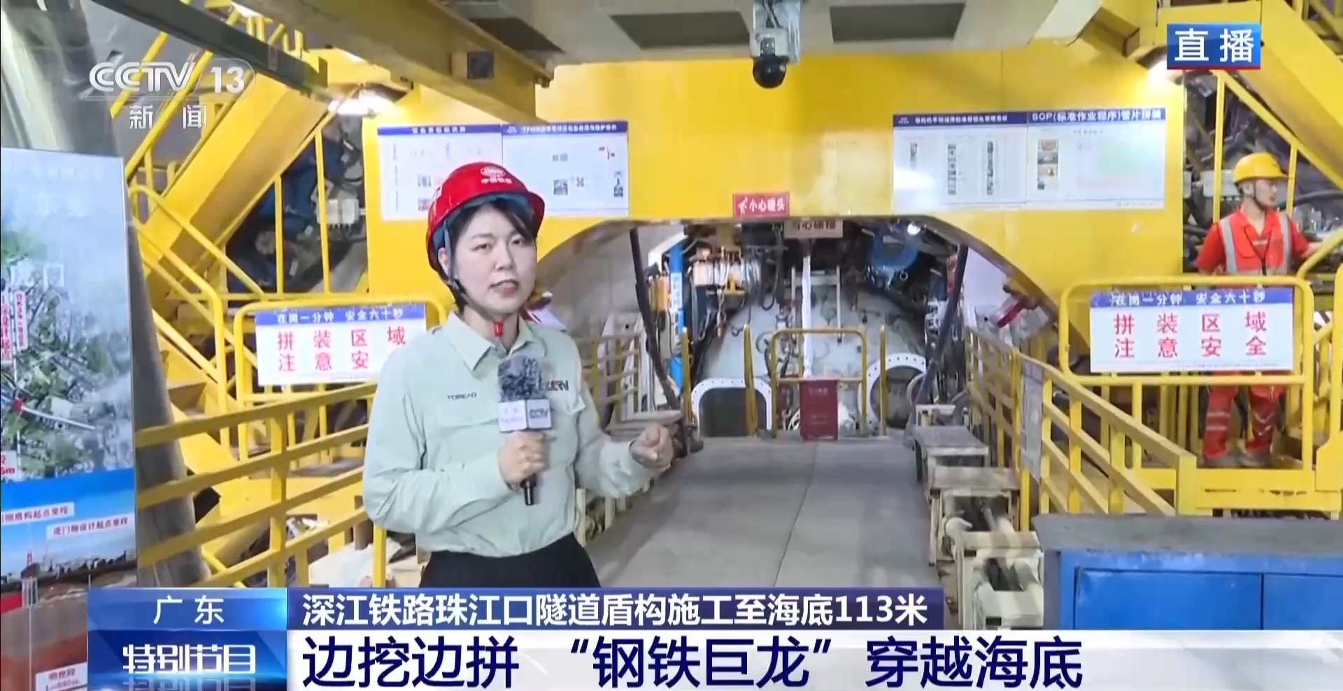 深江铁路珠江口隧道是海底盾构高铁隧道,清明假期,隧道建设者们坚守岗位,国产大直径盾构机“深江1号”日夜不停地向前掘进。