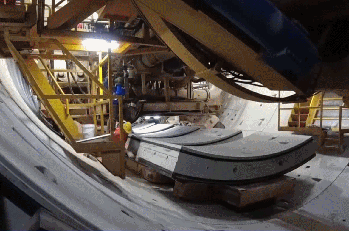 直径超13米的隧道,需要9片管片拼成一圈。这些管片在工厂预制完成,采用“边挖边拼”的方式,可以有效节约施工时间。