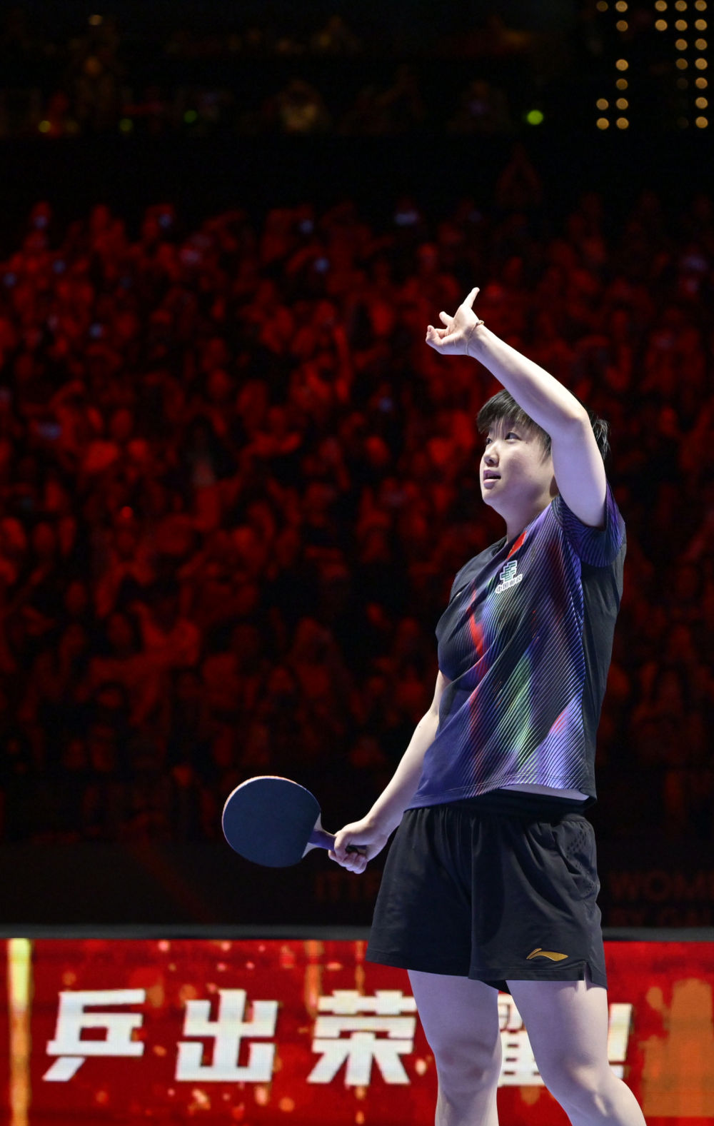 4月5日,孙颖莎获胜后向观众致意。新华社记者 于洋 摄