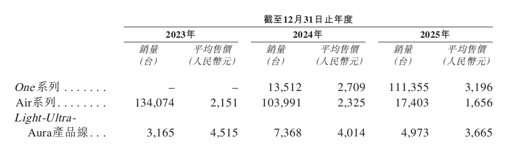 根据招股书,one系列和air系列,贡献了三年以来95%的销量。21世纪经济报道记者查阅电商平台注意到,one系列是XREAL京东、天猫旗舰店目前唯一在售的眼镜系列,补贴后售价在2960~3970元价格带,明显高于此前air系列两千多元的价格。