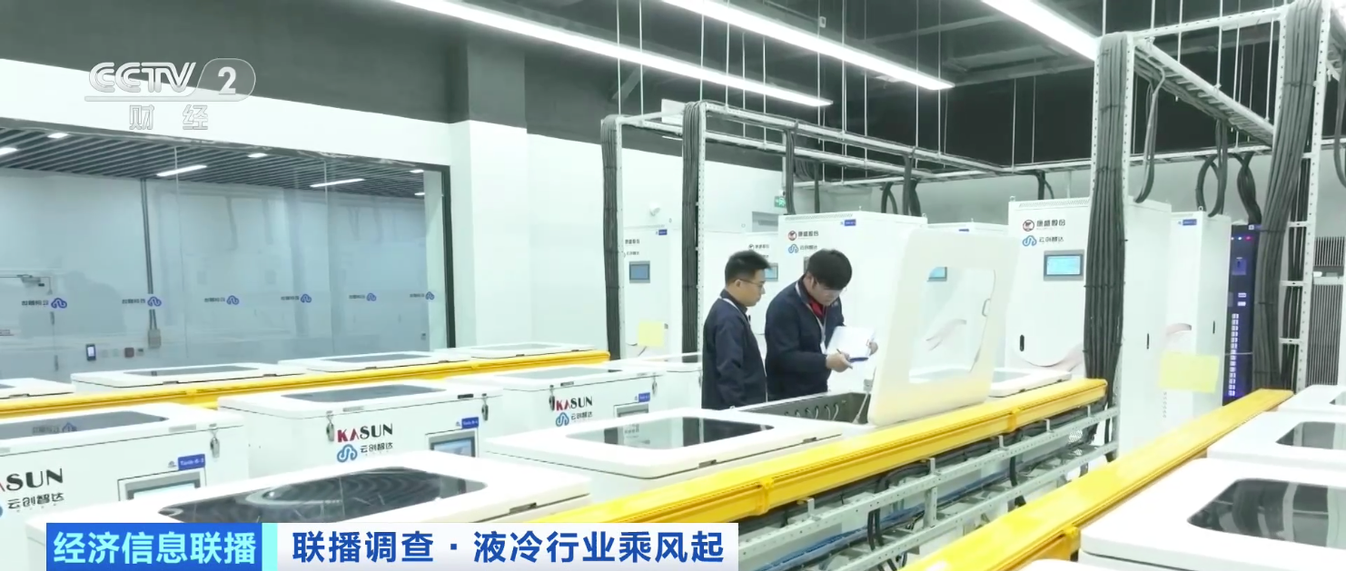 在浙江衢州一家冷却液生产企业的智算数据中心机房,摆放着一台台酷似白色冷柜的浸没式液冷设备。打开柜门,一列列服务器严丝合缝地浸没在液体中。