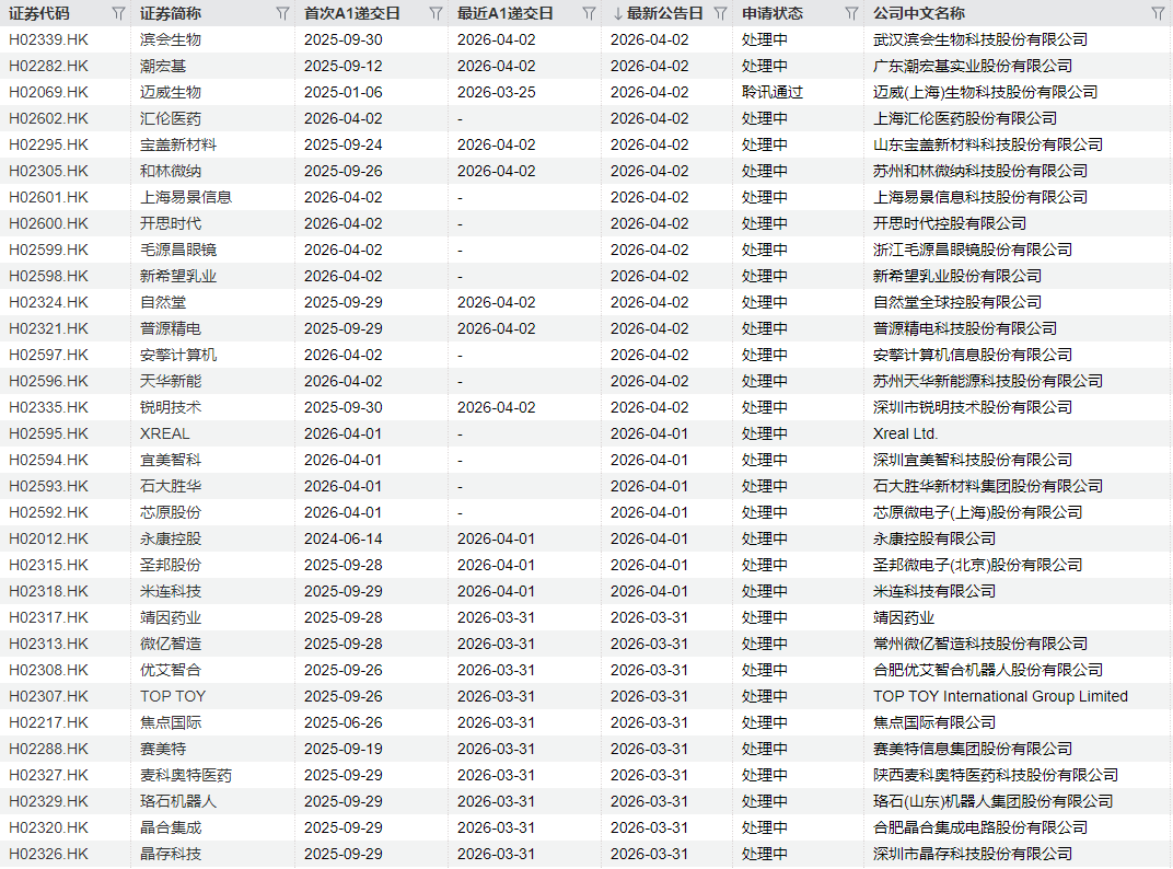 迈威(上海)生物科技股份有限公司、华勤技术股份有限公司等聆讯通过。珠海精实测控技术股份有限公司、利欧集团股份有限公司、安徽华恒生物科技股份有限公司等公司的港股申请失效。