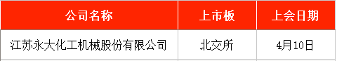 4月10日,北交所将审议江苏永大化工机械股份有限公司(下称“永大股份”)的IPO事项。公司专业从事基础化工、煤化工、炼油及石油化工、光伏与医药等领域压力容器的研发、设计、制造、销售及相关技术服务,形成以反应压力容器、换热压力容器、分离压力容器、储存压力容器为主的非标压力容器产品体系。