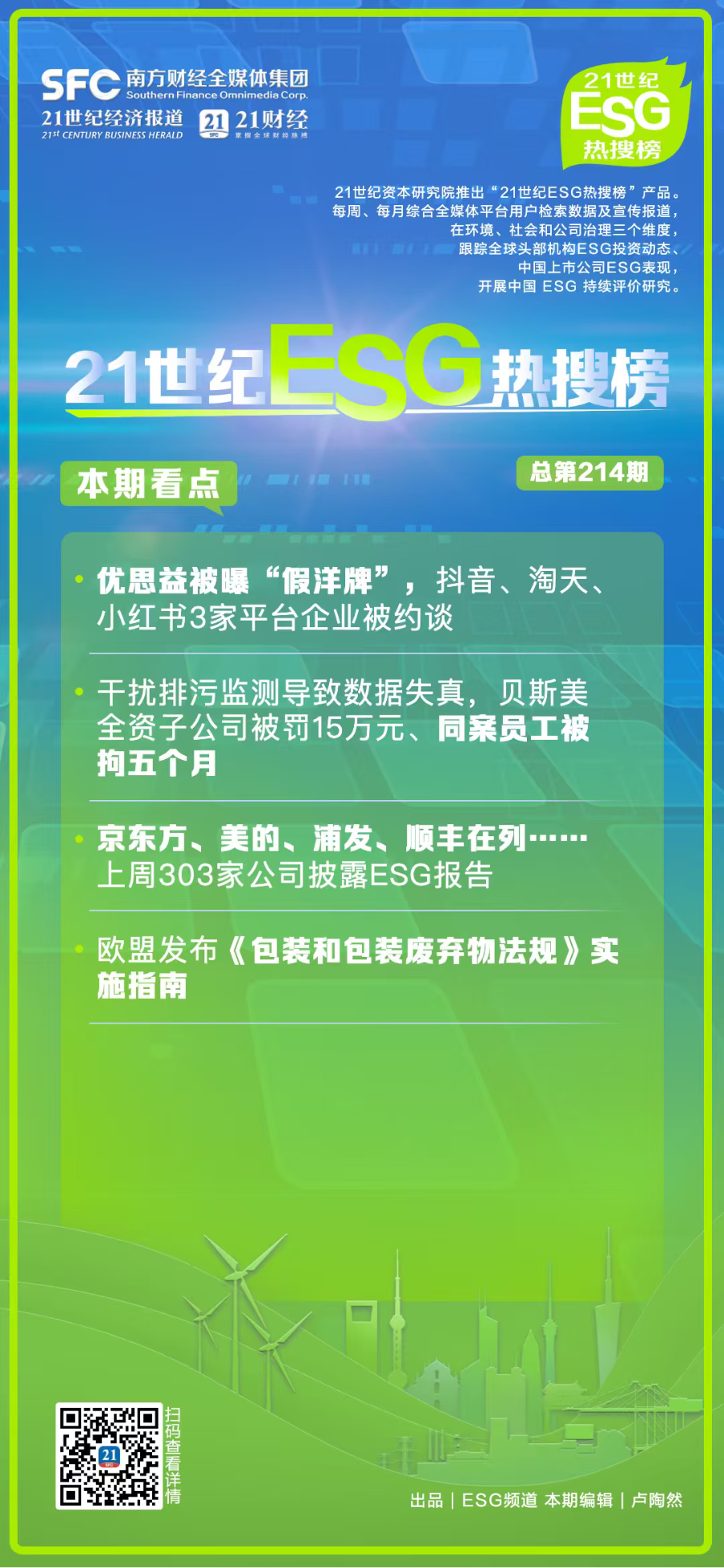 据21世纪经济报道记者统计,3月30日至4月3日,共计303家A股上市公司披露了2025年ESG报告,不少知名企业在列。