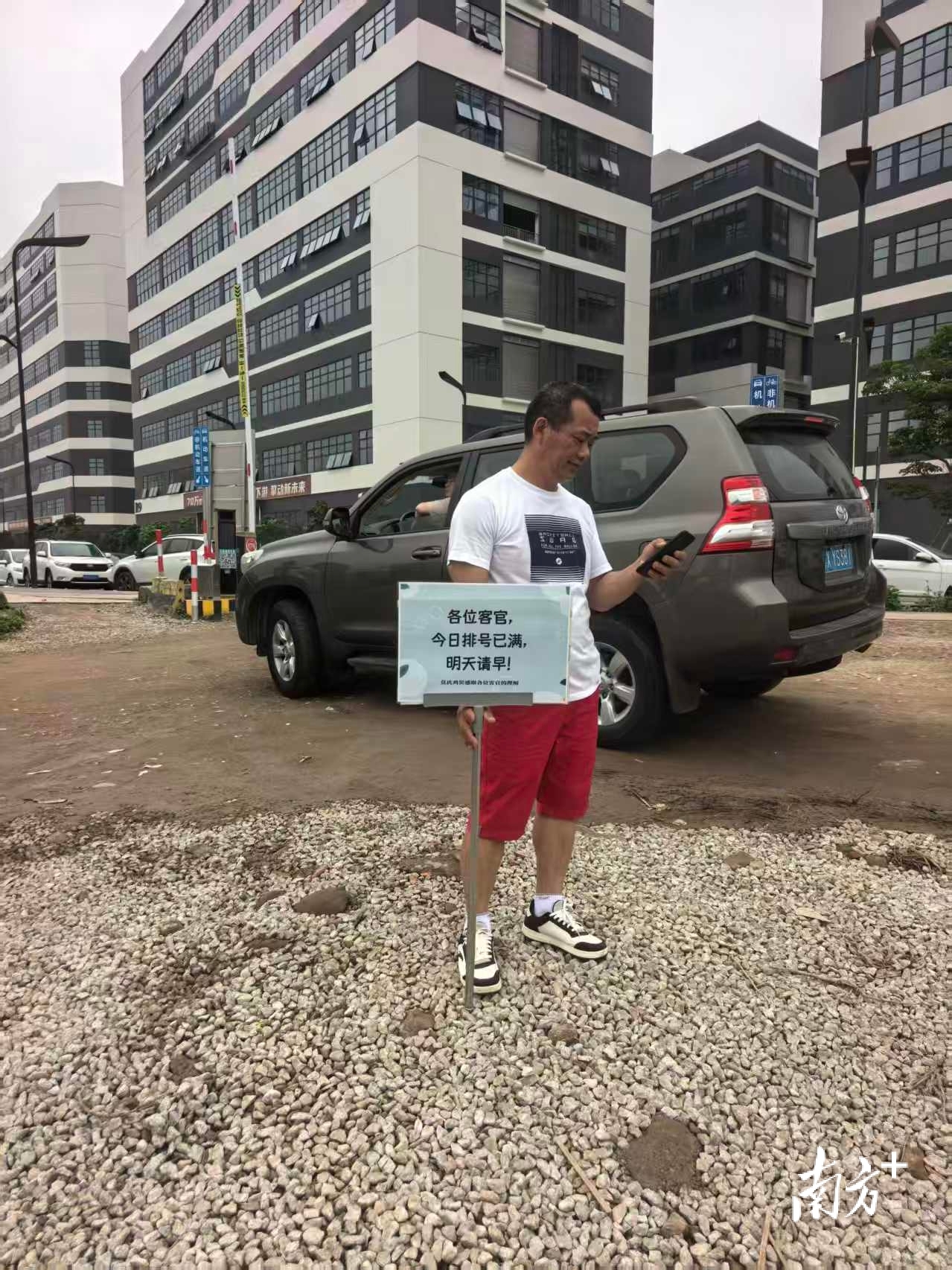 停车场有工作人员举牌称今日号已放完。