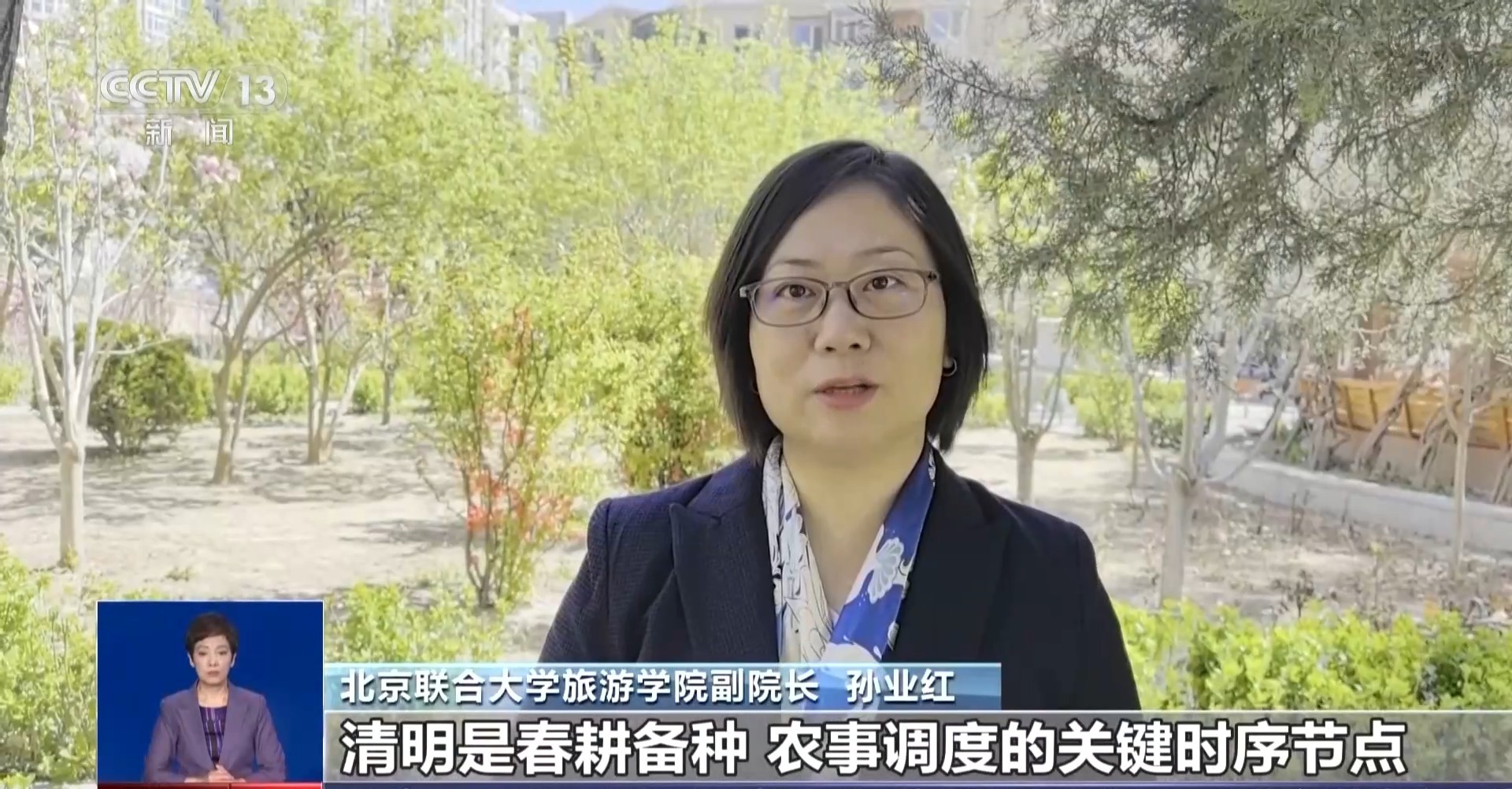 北京联合大学旅游学院副院长 孙业红:清明是春耕备种、农事调度的关键时序节点,这一节气兼具祭祖的肃穆与春日的生机,体现了“慎终追远、亲近自然”的文化传承。现代人将传统农时智慧融入到现代生活节律当中,让这一节气文化更具生活感和年轻化。