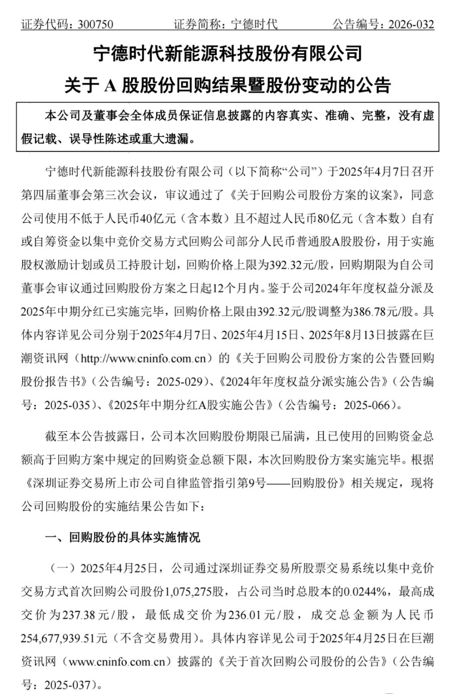 综合自宁德时代公告、证券时报及Wind