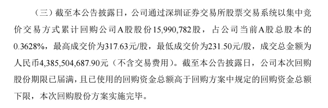 公告还指出,本次公司实施股份回购的资金总额、回购价格、回购股份数量、回购实施期限等,与公司董事会审议通过的回购方案不存在差异。公司实际回购金额已达回购方案中规定的回购资金总额下限,且未超过回购资金总额上限,本次回购符合既定的回购股份方案。