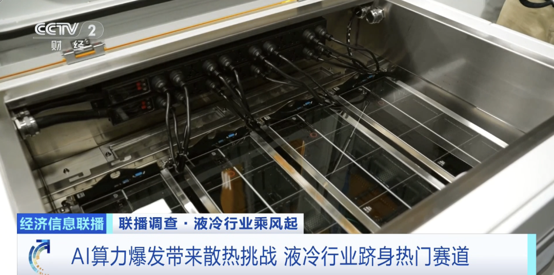 今年以来,AI算力需求呈现爆发式增长,为相关产业链打开增量空间。算力要求越强,对数据中心大量芯片的散热能力要求就越高,这使得液冷行业成为目前企业争相布局的“热门赛道”。 在浙江衢州一家冷却液生产企业的智算数据中心机房,摆放着一台台酷似白色冷柜的浸没式液冷设备。打开柜门,一列列服务器严丝合缝地浸没在液体中。