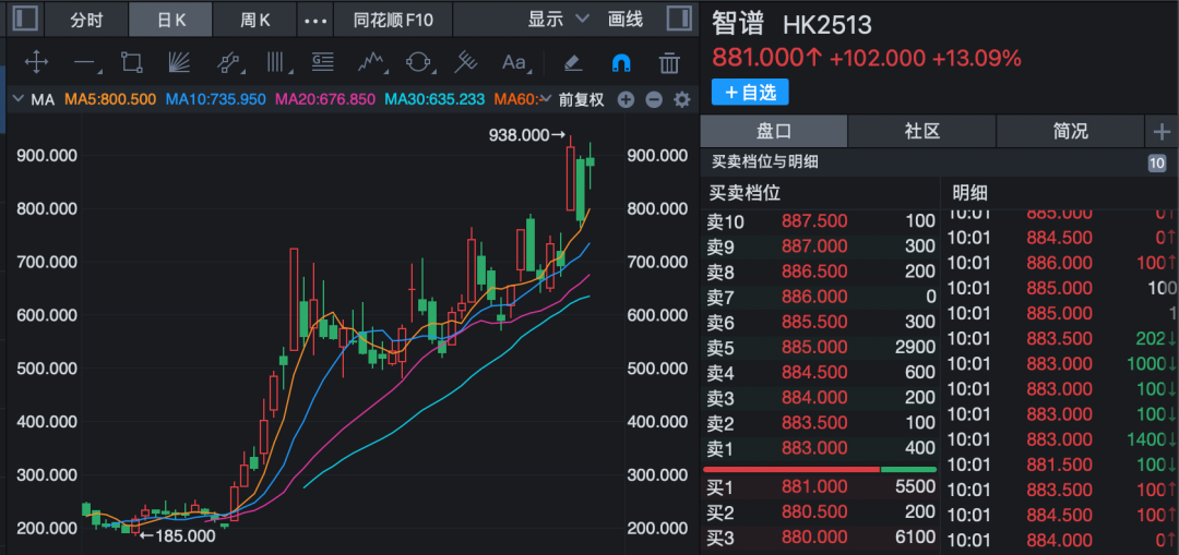 港股智谱大涨 港股大模型、AI应用板块集体高开,智谱盘中一度涨近17%,最新涨幅为13.09%。