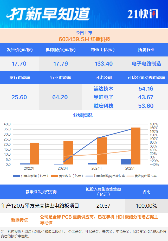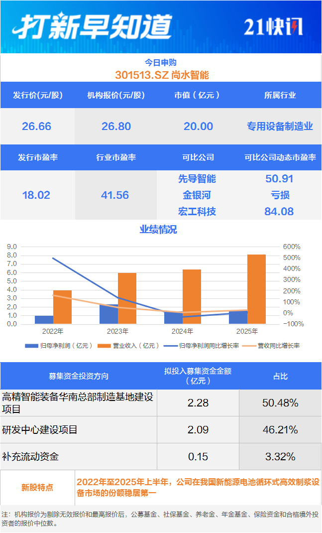 4月8日,可申购创业板的尚水智能(301513.SZ),另有两只新股上市,为沪市主板的红板科技(603459.SH)与北交所的晨光电机(920011.BJ)。